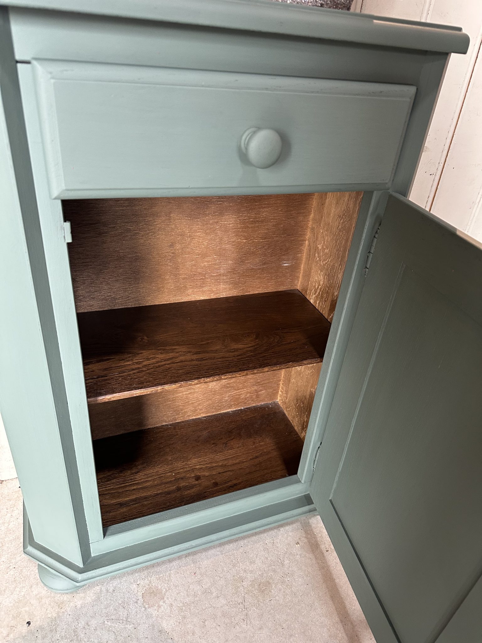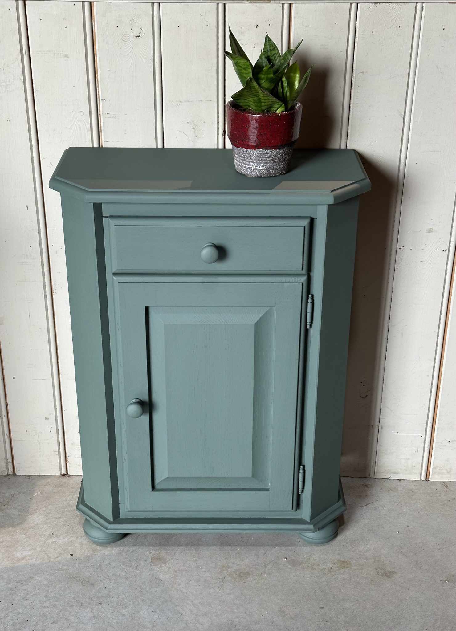 Groen halkastje, met deurtje en la.