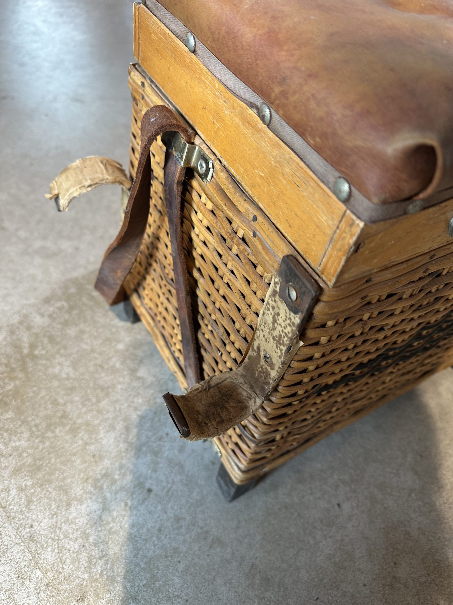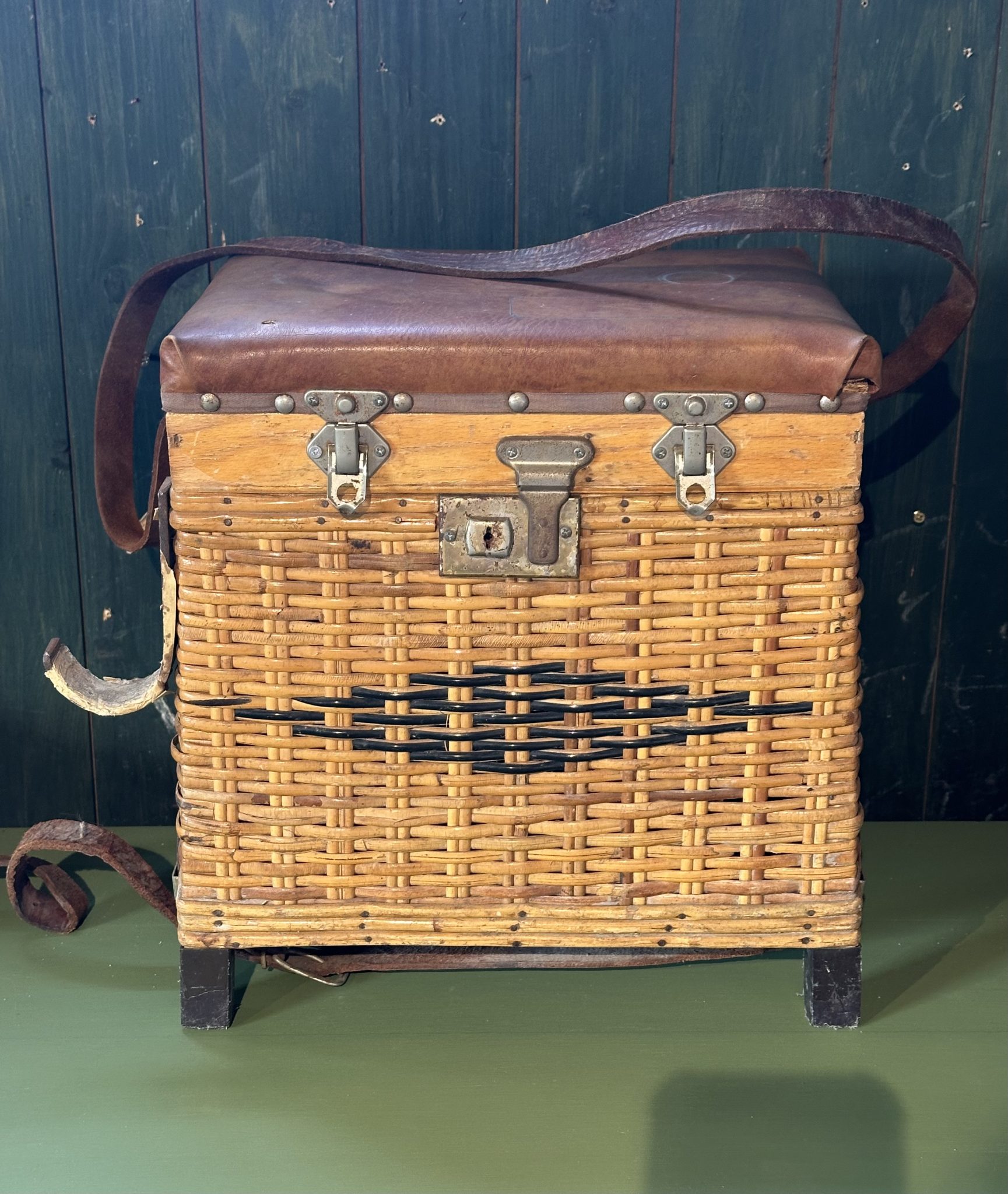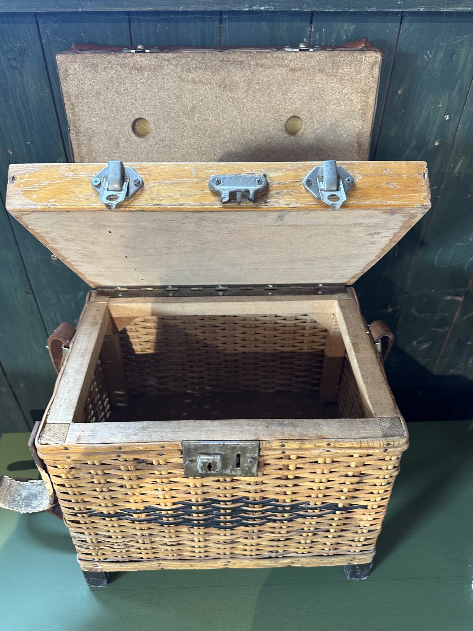 Oude visserskoffer. 36cm h, 34,5cm b en 24,5cm d.