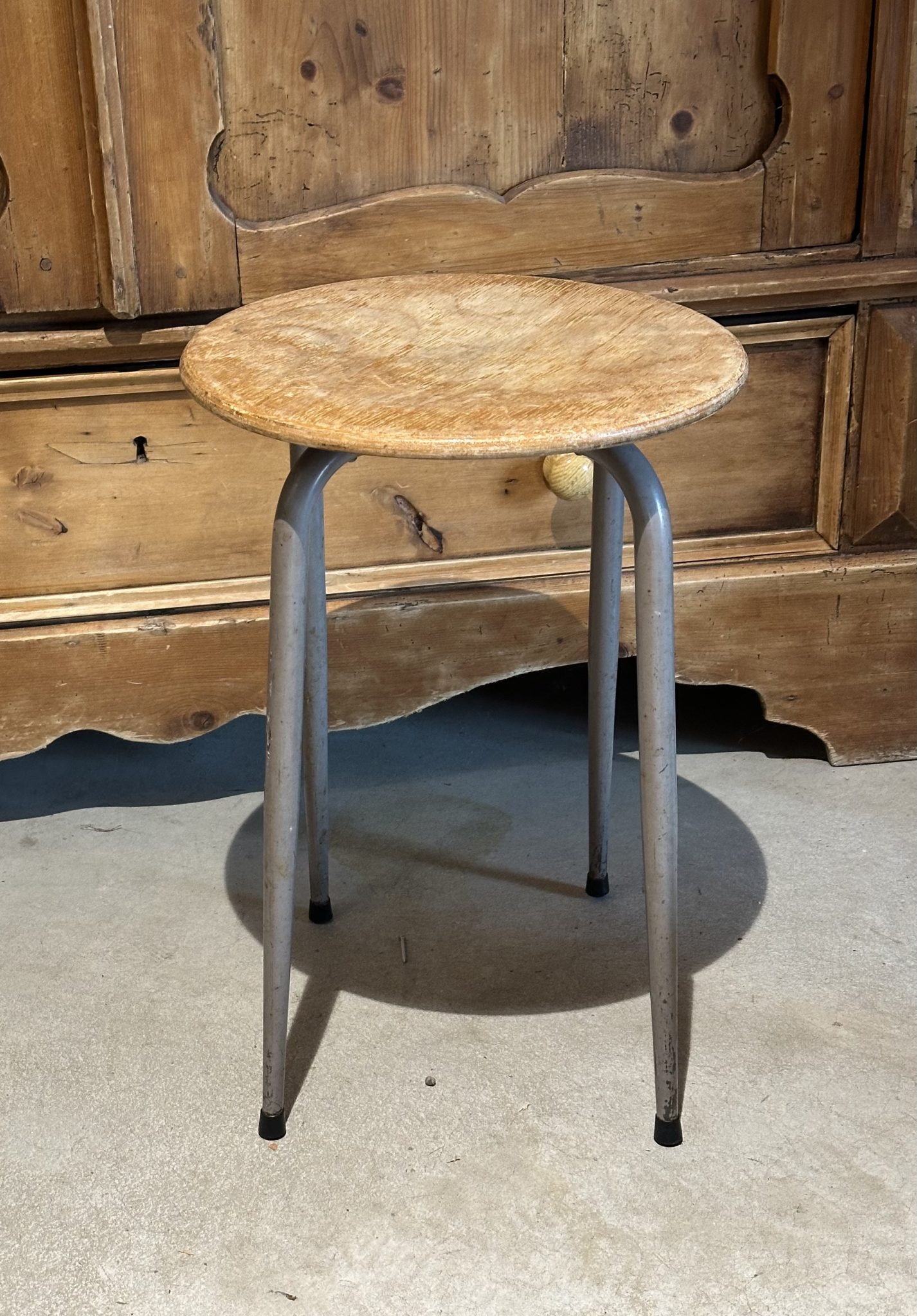 Vintage kruk. 49,5cm h en zitvlak 34,5cm doorsnee.
