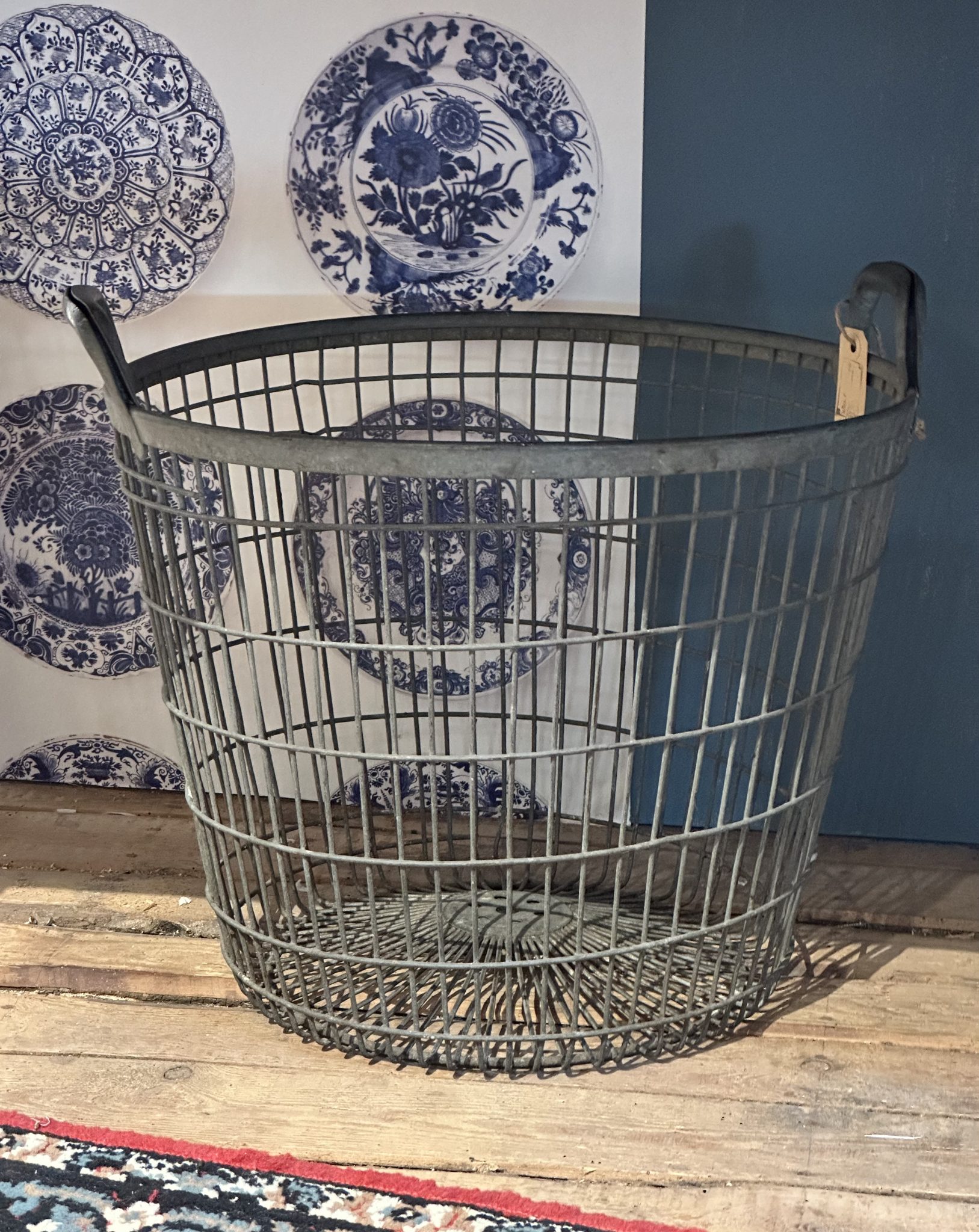 Oude ijzeren aardappel mand. Mand 36cm h en 44,5cm doorsnee.