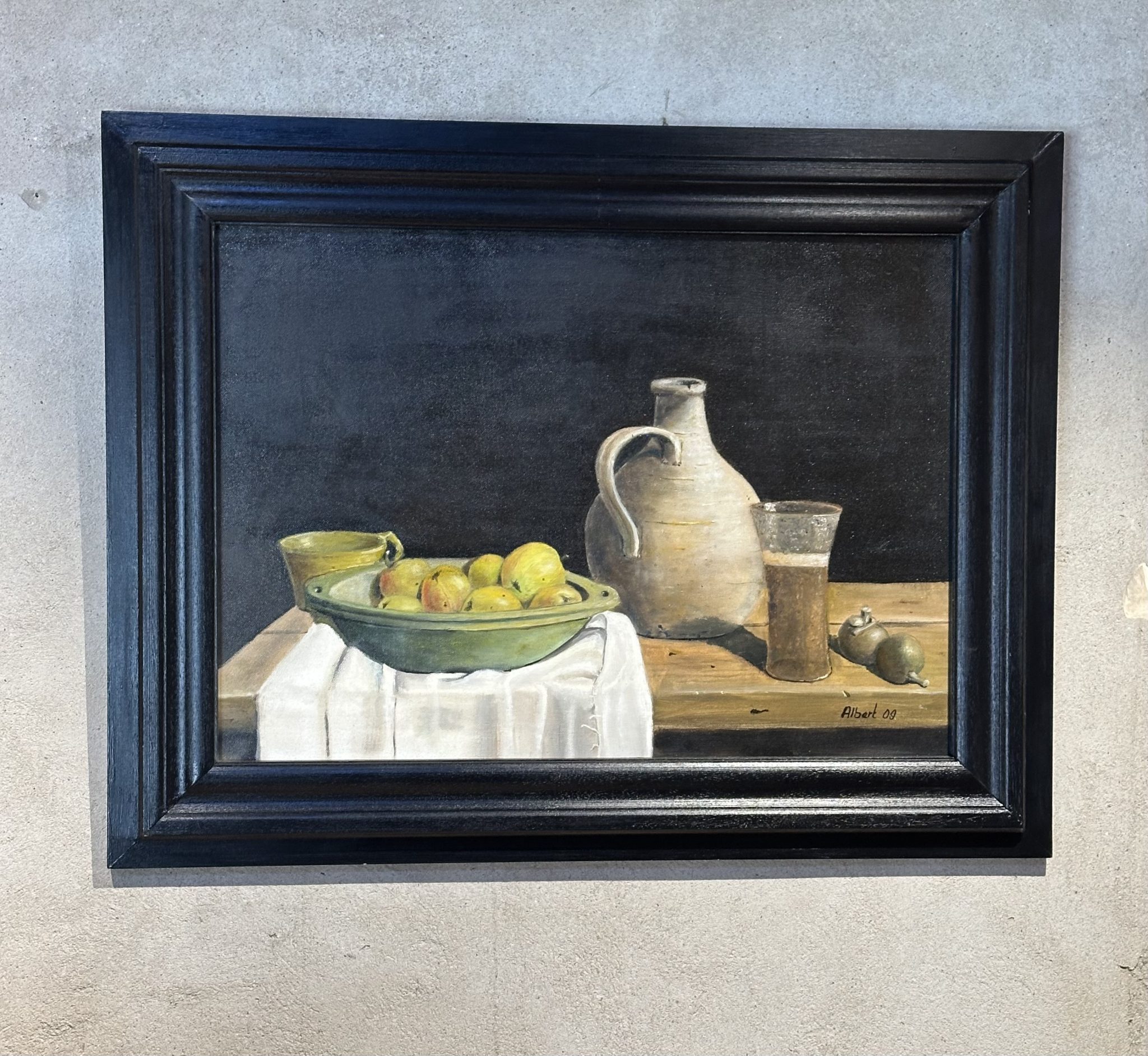 Stil leven schilderij. 68cm h en 88cm b.