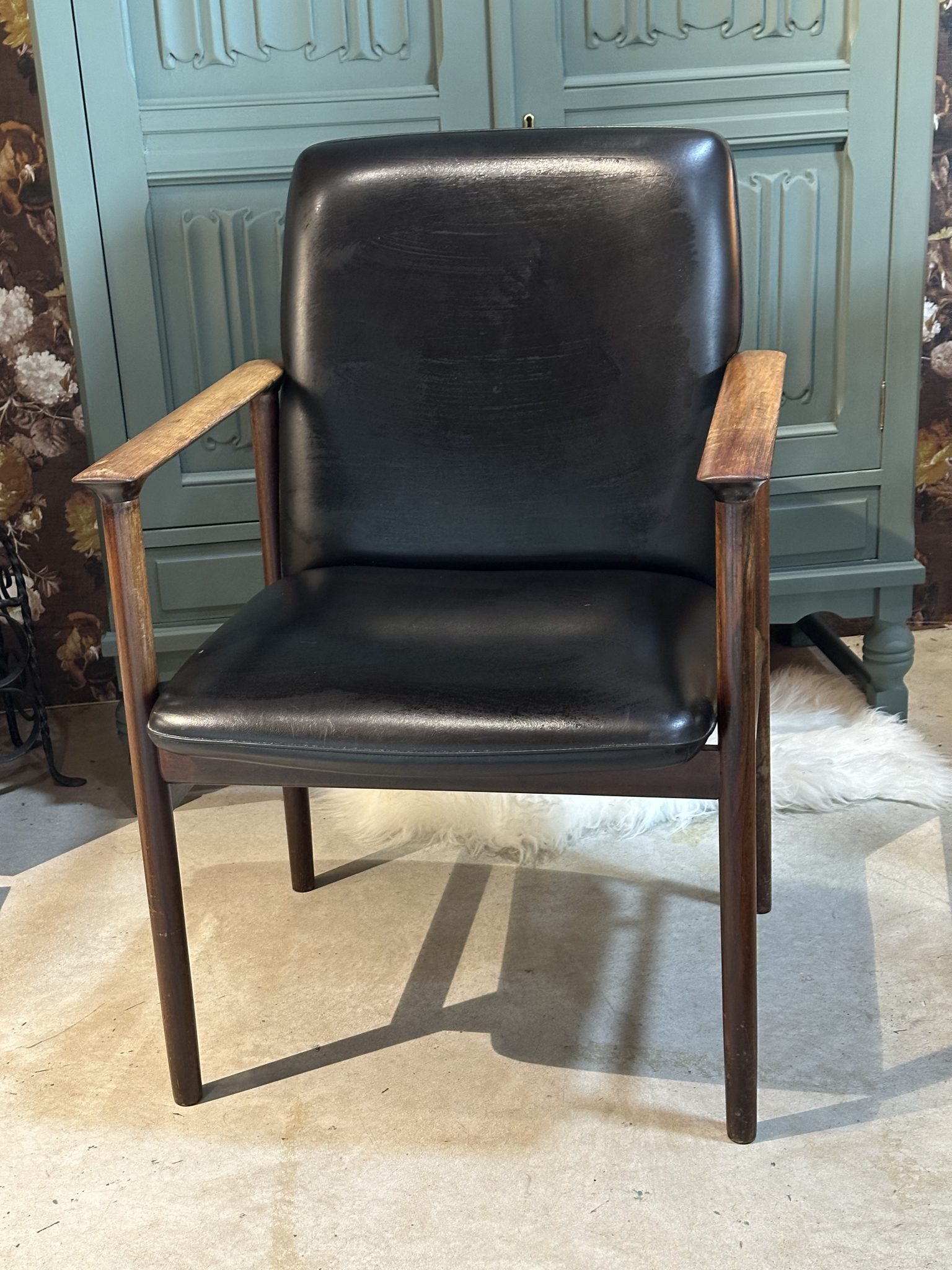 Mooi vintage stoel met zwart skai. Ontworpen door Cor Bontenbal 1960