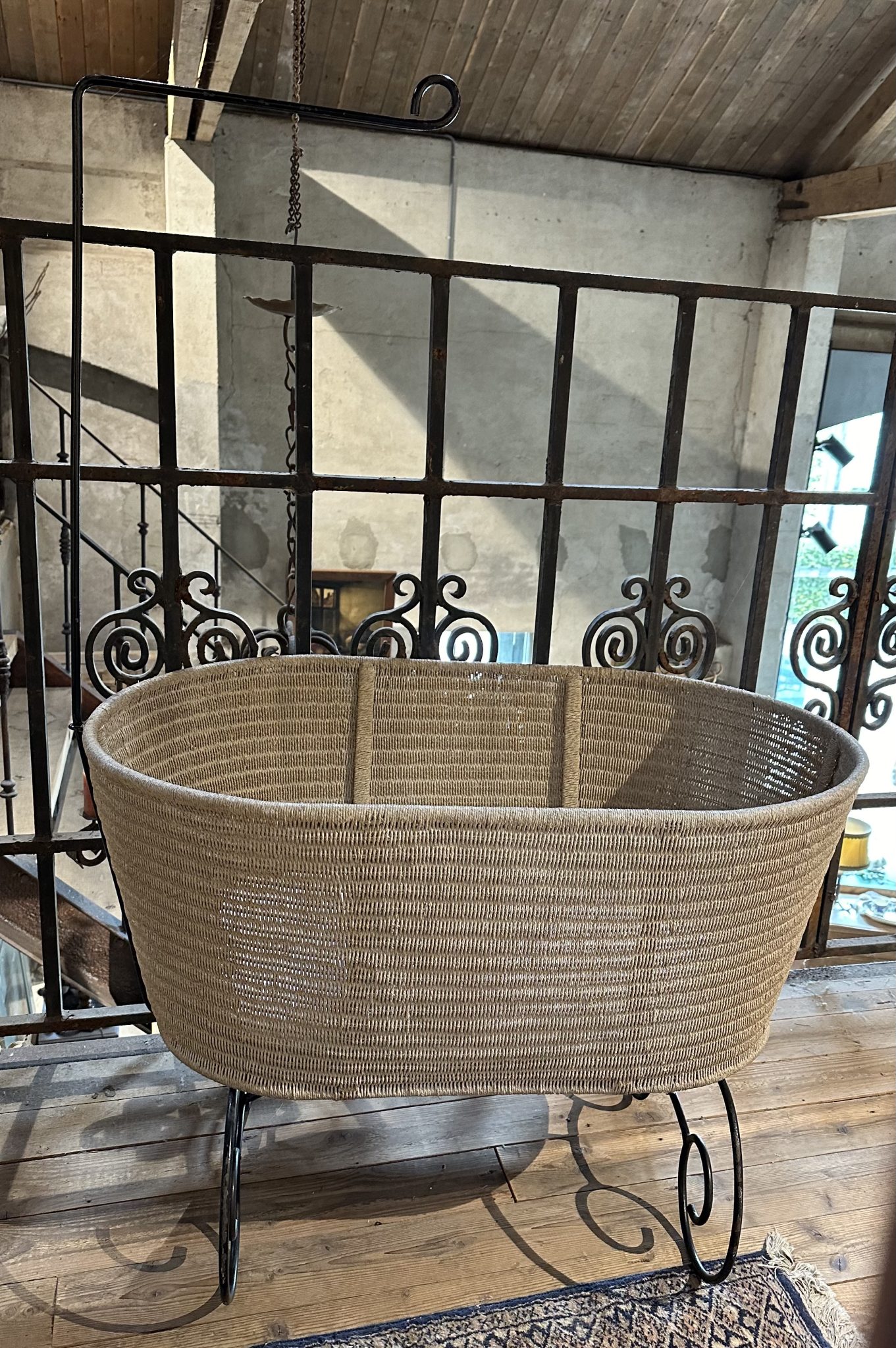Leuke vintage wieg,van touwen smeedijzeren onderstel.